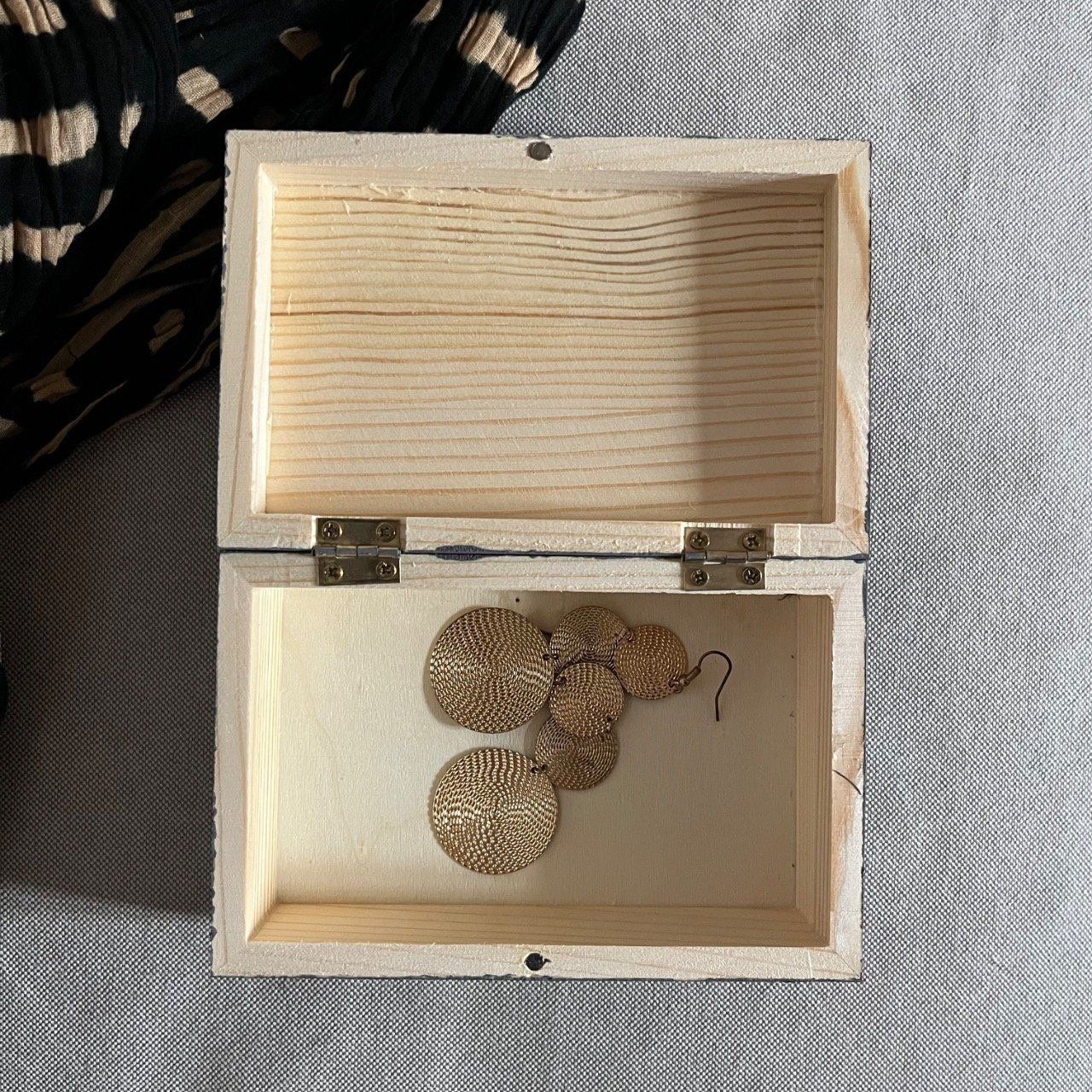 L'intérieur, vierge de toute décoration, vous permet de l'adapter à vos besoins : une boîte à bijoux élégante ou un petit coffre pour tous vos objets précieux.